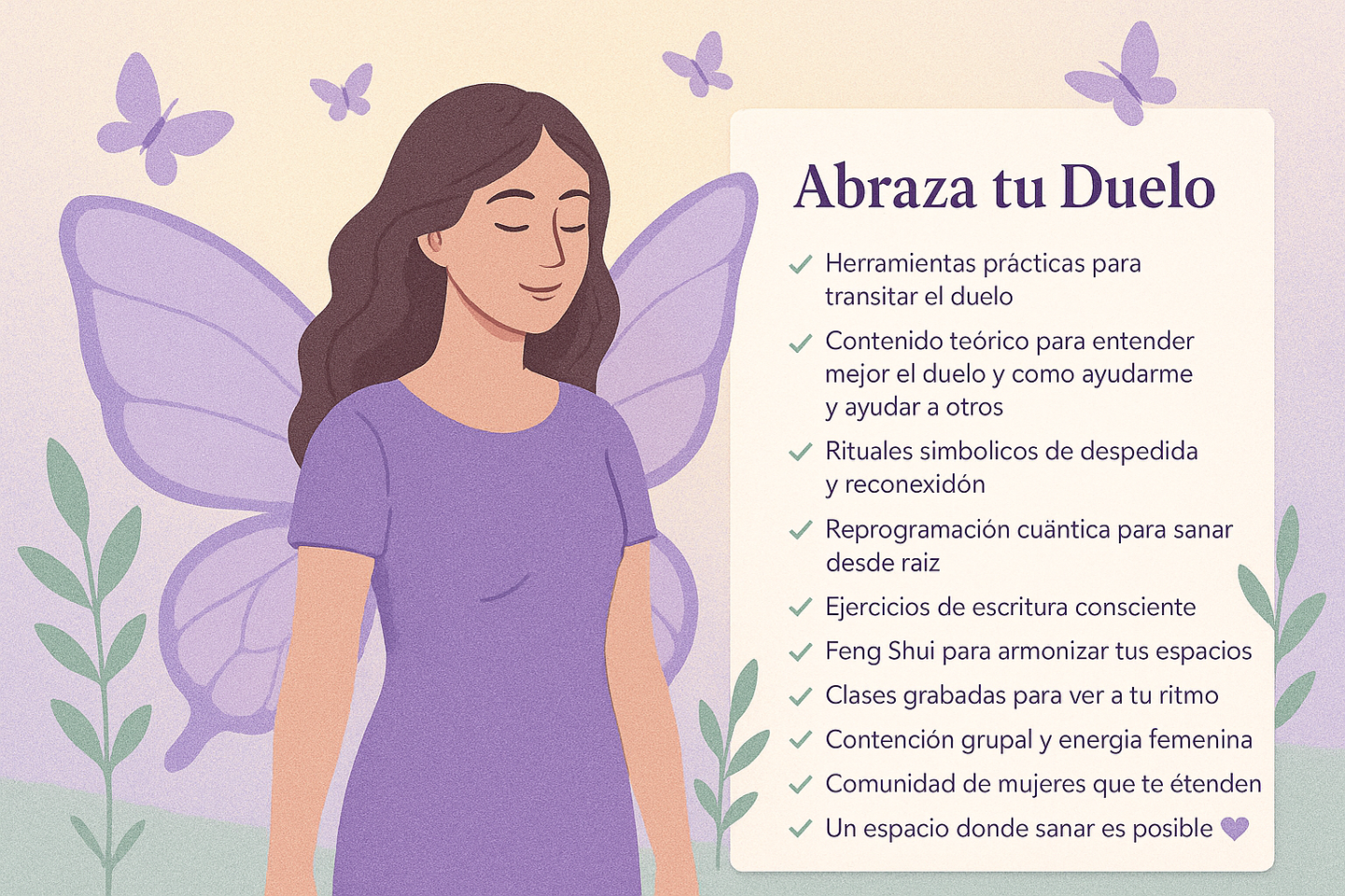 Saná tu duelo con herramientas reales, contención amorosa y una comunidad de mujeres que te sostienen. No estás sola. Este es tu lugar💜.