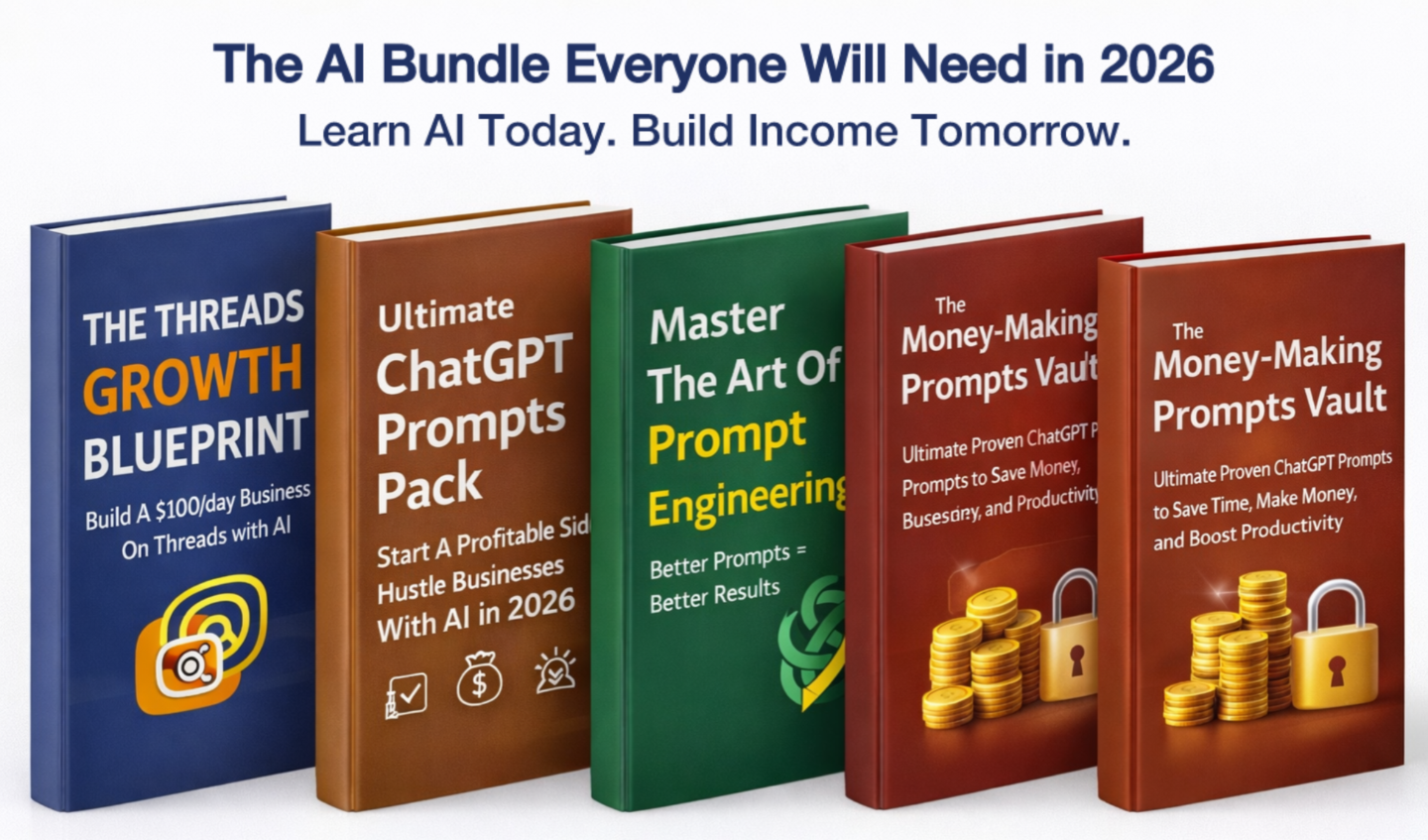 As a bonus, you’ll also get FREE access to the AI Bundle Everyone Will Need in 2026, including 4 ebooks covering prompt engineering, growth, monetization, and automation.