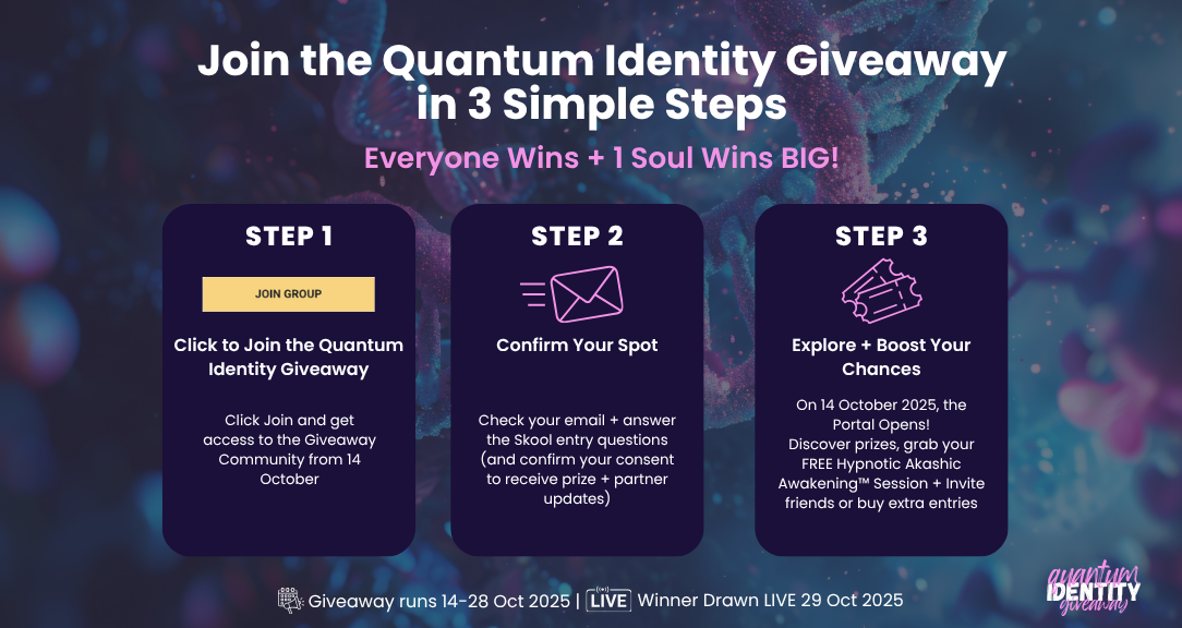 ๐ Grand Prize: The Quantum Identity Package โ transformational prizes from Bree + 20 Giveaway Partners (readings, coaching, memberships, courses + more) valued at $5,408+ USD