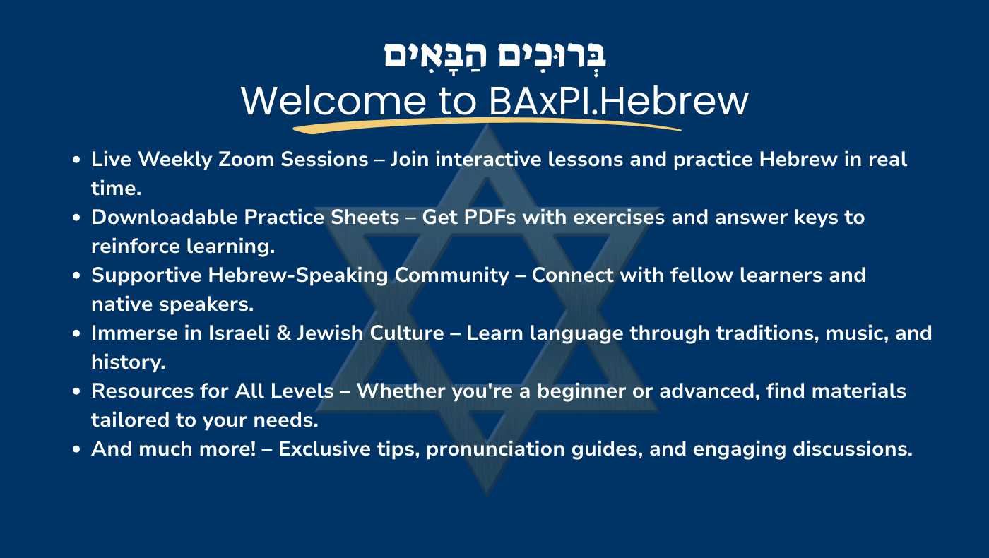 Welcome to BAxPI Hebrew, your go-to community for learning Hebrew in a fun, engaging, and structured way!