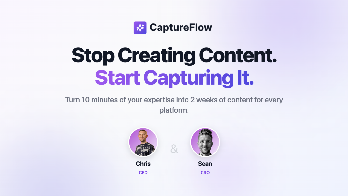 CaptureFlow turns your expertise into professional content for LinkedIn, X, TikTok, Instagram, YouTube, and Facebook, in minutes, not hours.