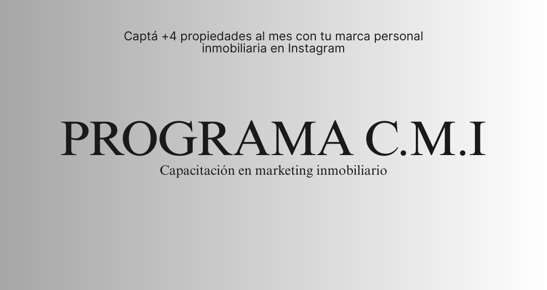 Te doy la bienvenida al Programa CMI. En esta plataforma está alojada toda la información necesaria para captar +4 propiedades con tu marca personal!