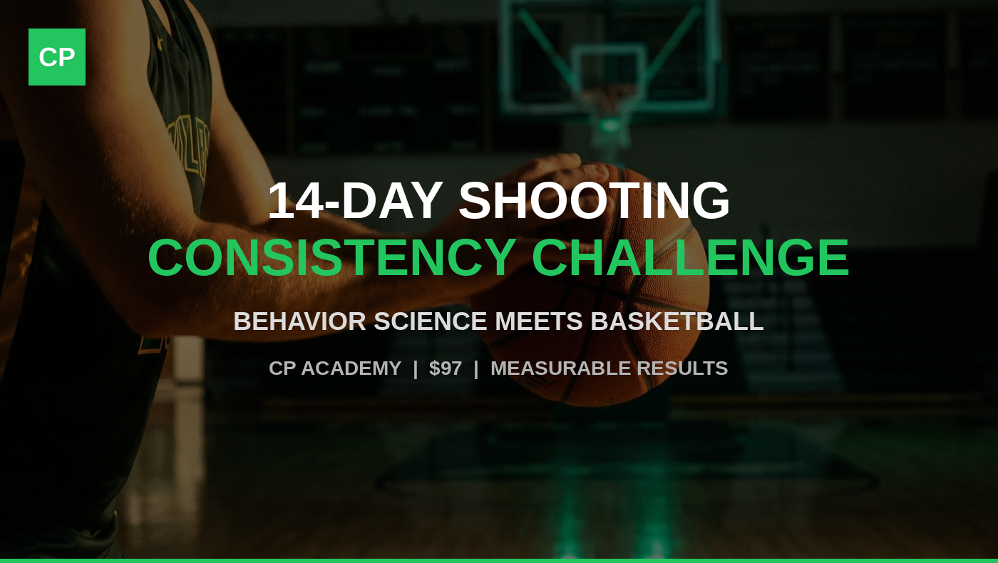 This is home to the 14-Day Shooting Consistency Challenge -- a program that uses Applied Behavior Analysis (ABA) to build a shot you can trust under pressure. Not just in an empty gym.