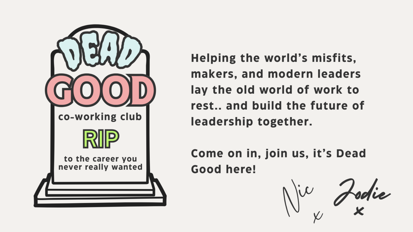 The Dead Good [Co-Working] Club is the funeral party for the career you never wanted - a learning and networking community for people designing what comes after corporate life.
