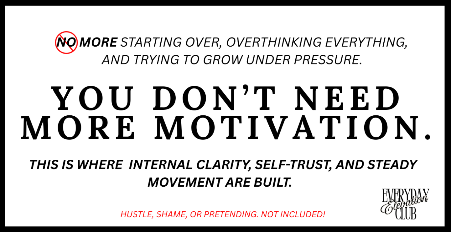Everyday Elevation Club is about leveling up internally; how you think, choose, move, and stay consistent without pressure or shame.