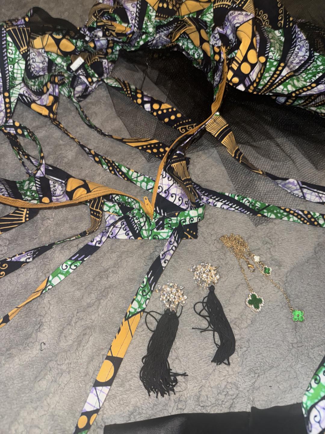 Hand made African fringes for back of dress zipper!
