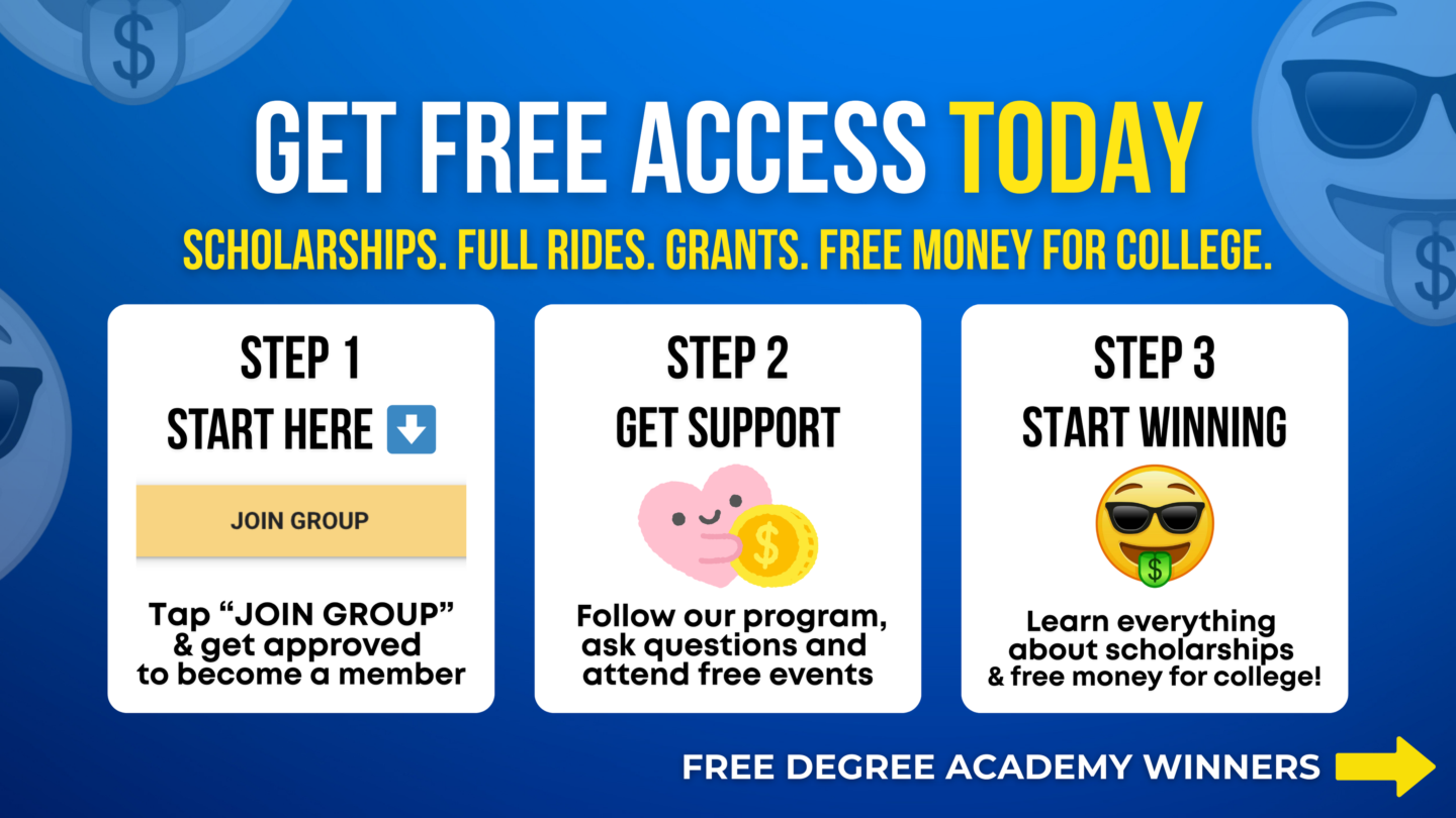 Welcome to the Free Degree Academy for students who want to win scholarships, maximize financial aid, and graduate debt-free!