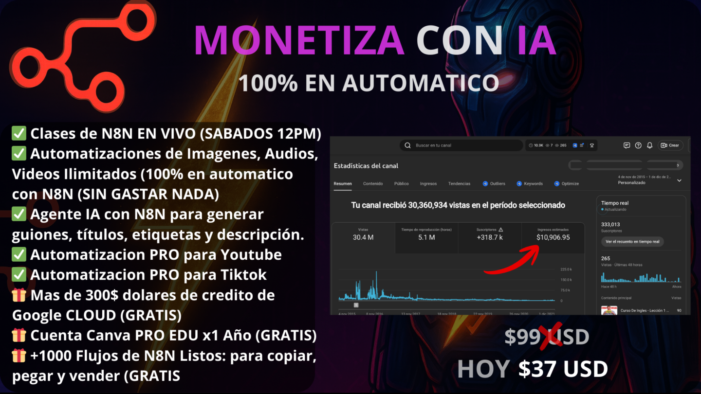 ✅ Agentes IA con N8N para generar guiones, títulos, etiquetas y descripciónes.