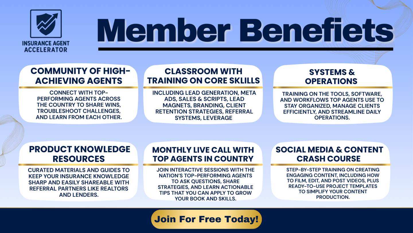 A community for agents who want to grow faster, master marketing, simplify workflows, and build a strong, profitable book with real world guidance.