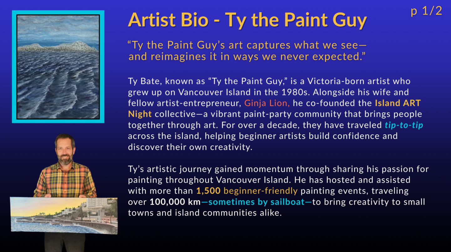 We’ll guide you step by step through our most popular paintings as Ty and I take turns teaching each other how to create the ART of the Night. The twist? Whoever’s learning has to paint with their non-dominant hand—expect laughs, happy accidents, and proof that perfection isn’t the goal.