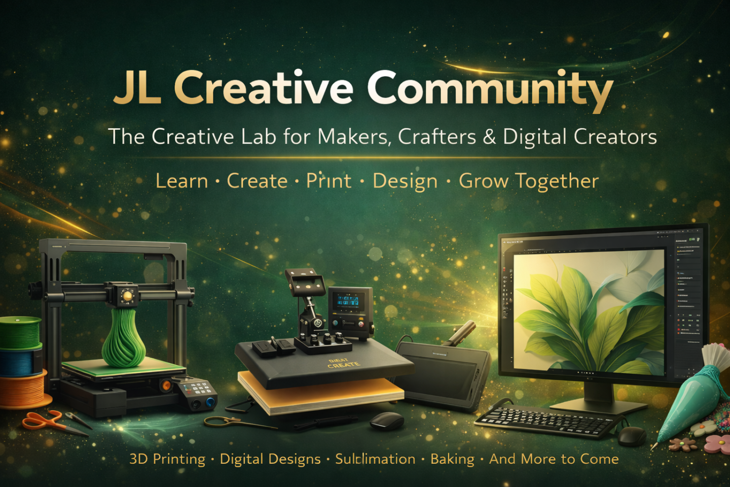 A creative lab for crafters to learn, create, and grow across 3D printing, digital designs, sublimation, baking, and more.
