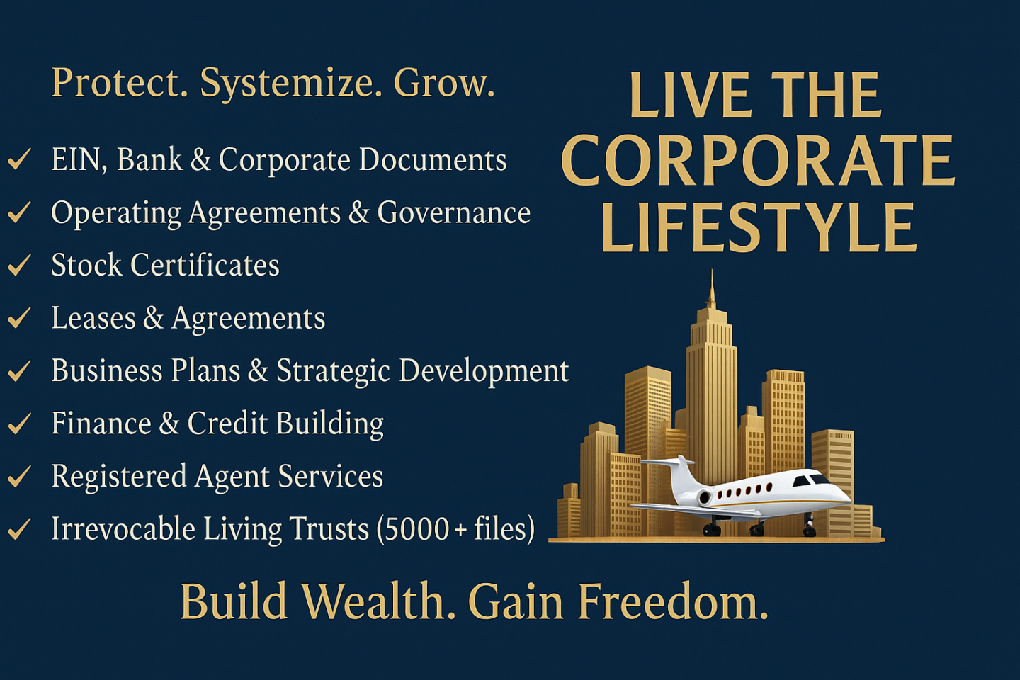 Welcome to the official classroom for LiveTheCorporateLifestyle.com — a space to learn the systems, structures, and strategies that build true business freedom. Inside, you’ll access lessons, templates, and mentorship designed to help you protect your assets, establish corporate credibility, and scale with confidence.