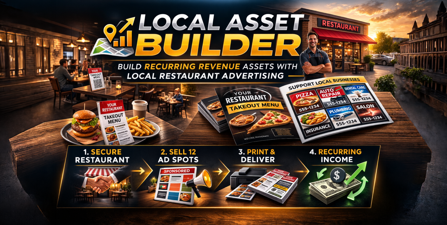 Build your first recurring local income asset in 30 days - starting with one restaurant and a handful of advertisers.