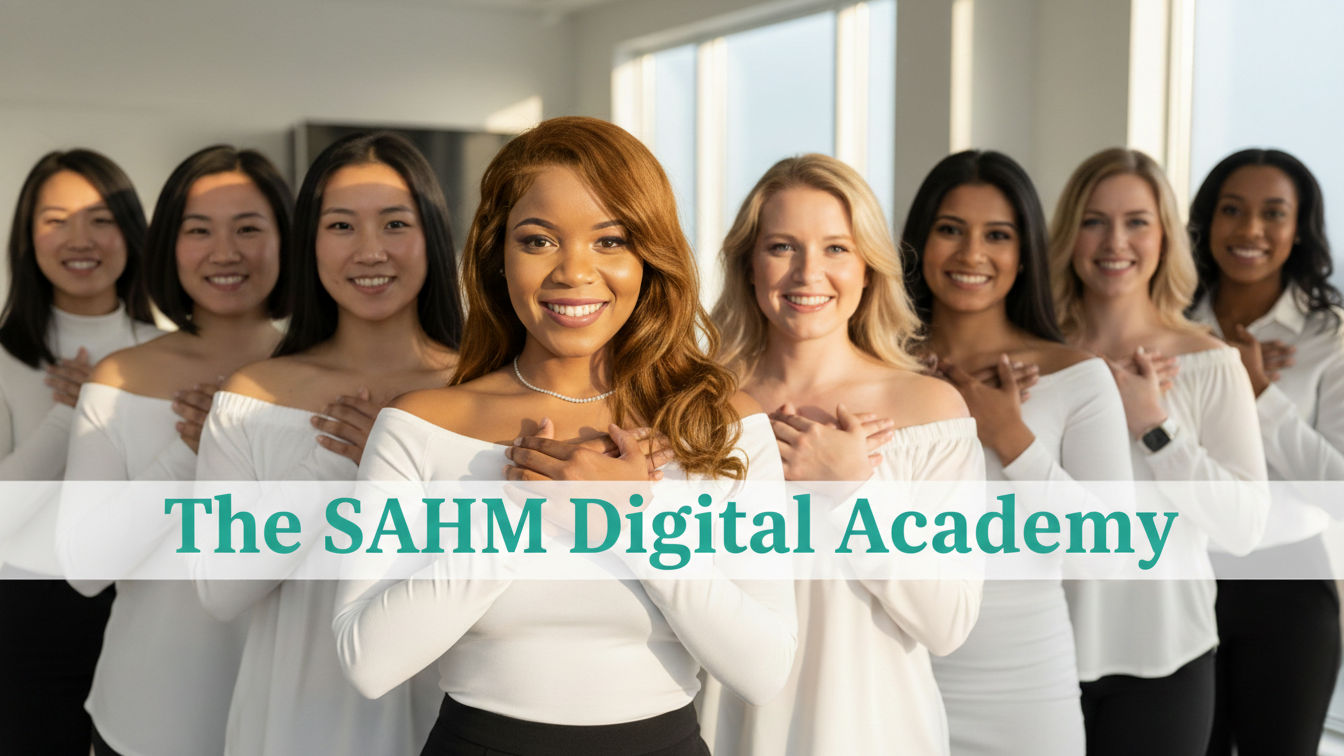 The SAHM Digital Academy is a supportive, step-by-step community for stay-at-home moms who want to build real income through digital products.