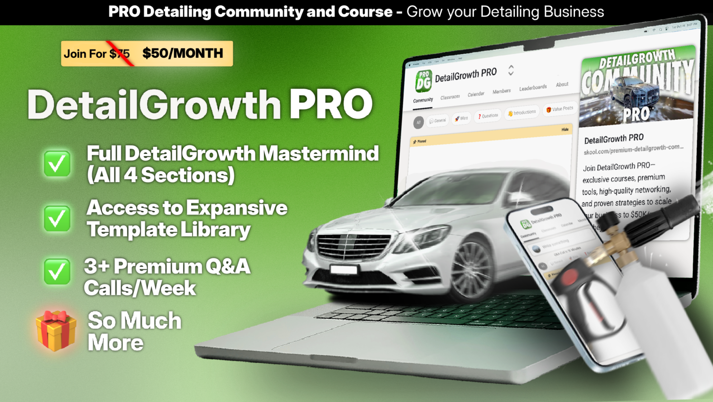 Welcome to DetailGrowth Pro—the premium community for ambitious detailers ready to scale their businesses to $25K, $50K, and beyond!