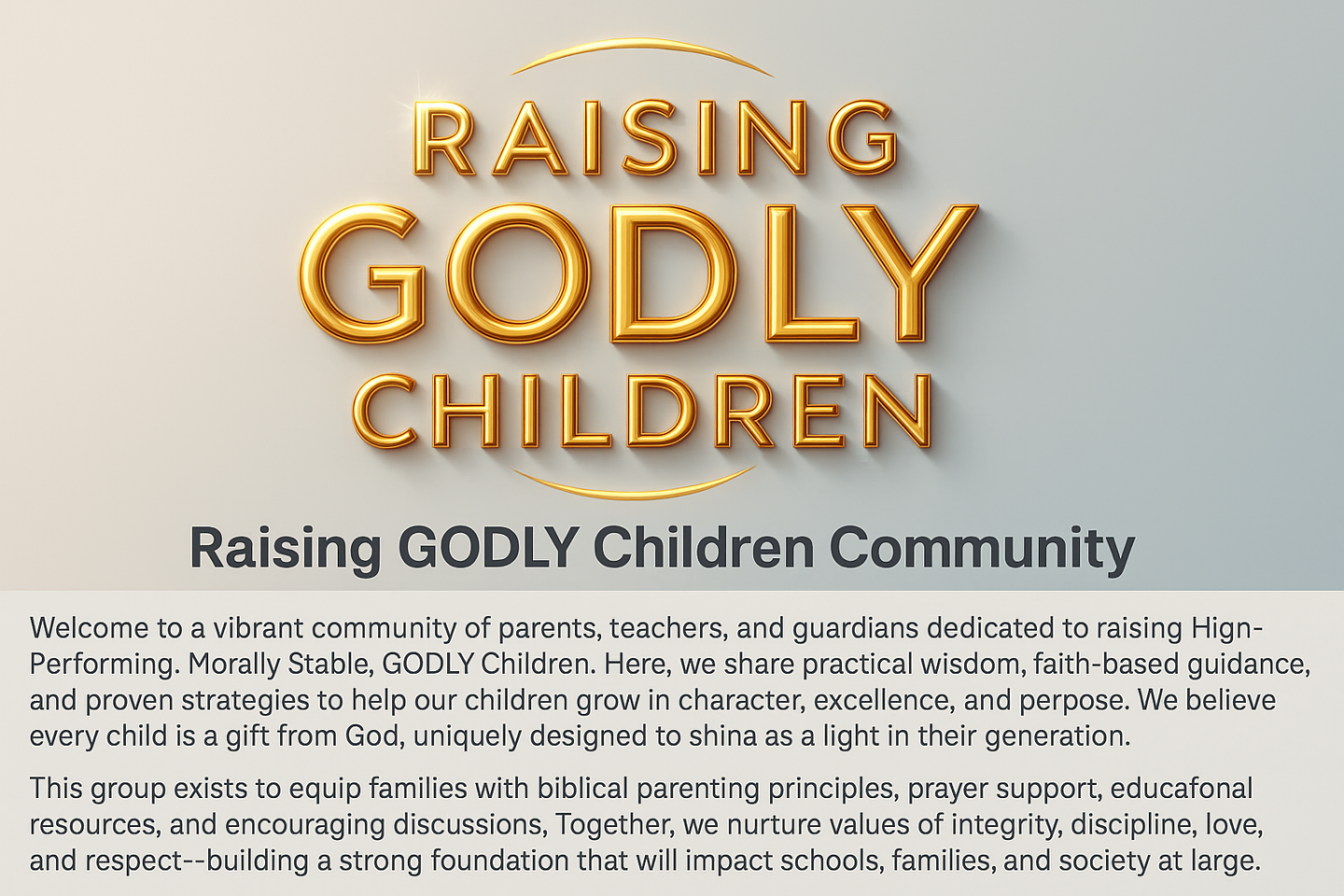 We are a faith-driven community of parents, entrepreneur parents, teachers, and guardians dedicated to raising Wholesome, Stable, High-Performing, GODLY Children. We believe Children are our greatest investment, and GOD requires us to account for the treasure HE placed in our hands. This group equips families with biblical parenting principles, prayer, wisdom, and resources to nurture integrity, discipline, love, and excellence. Here, we celebrate victories, share encouragement, and provide practical strategies to help Children grow strong academically, spiritually, and socially.
