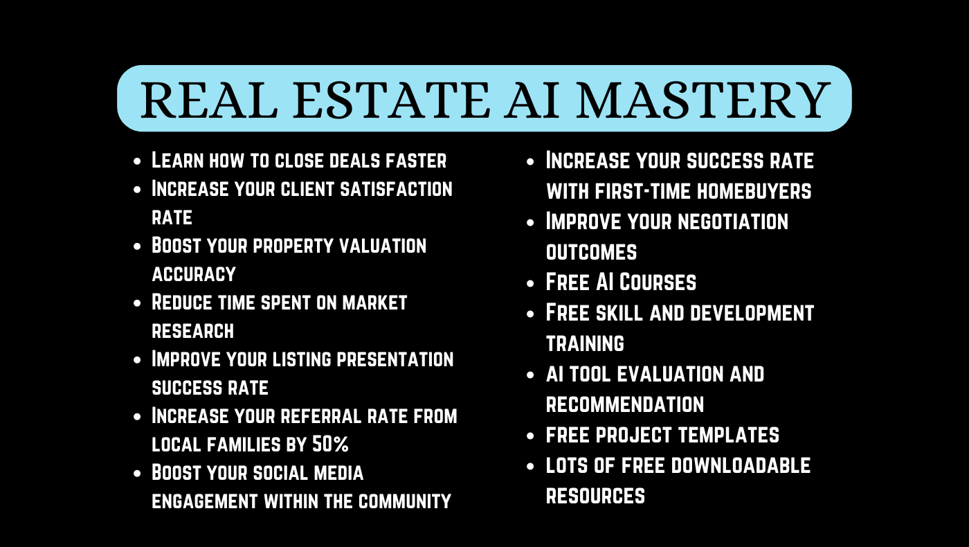 Want to see real results in your real estate business? Real Estate AI Mastery offers the tools and knowledge you need to leverage AI for maximum impact. Increase your leads, close more deals, and boost your bottom line.