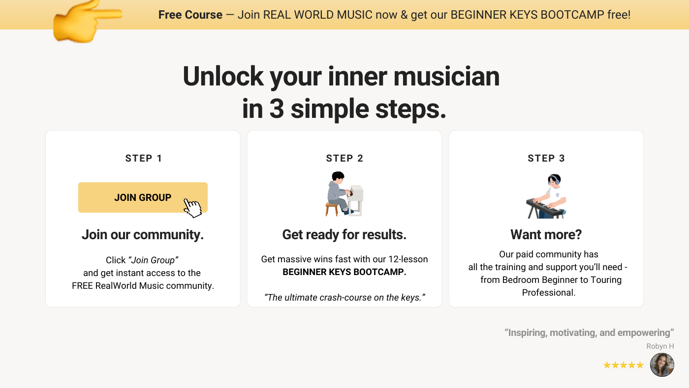 Join the Real World - a community of adults learning from touring musicians.
