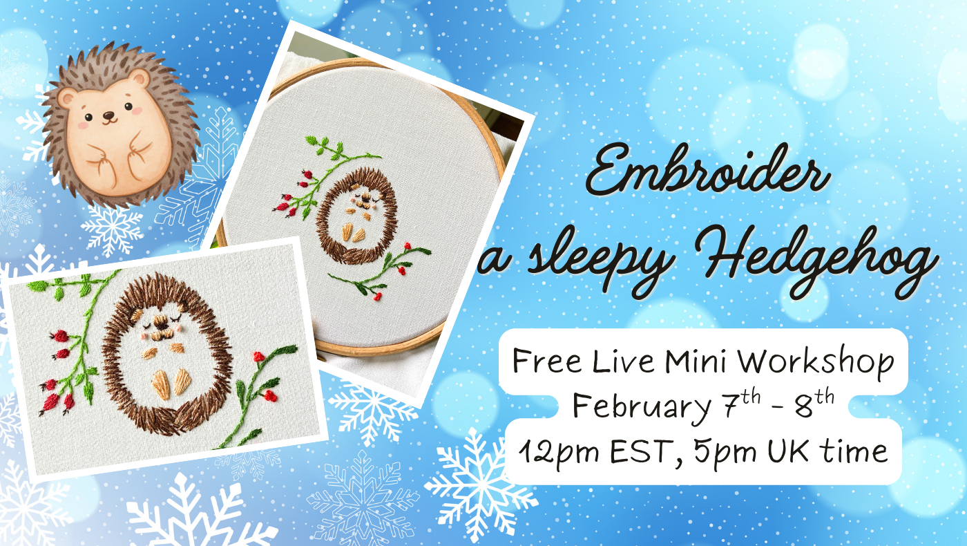 NEW: The FREE winter mini workshop will happen live the 7th and 8th of February, join us to learn how to embroider the most adorable sleepy hedgehog! 🦔