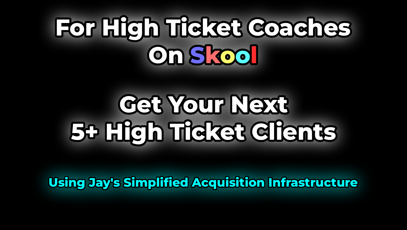 š This community helps coaches sign their next 5+ High Ticket Coaching Clients through Jay's Simplified Acquisition Infrastructure, completely for FREE.