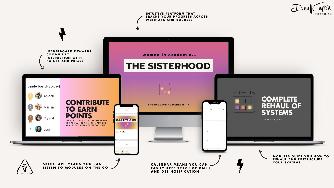 Women in academia! Get more writing and research done in less time and with better results from The Sisterhood! As a member of this community, you will receive regular support and ongoing strategy from academic and certified coach Danielle Turton.