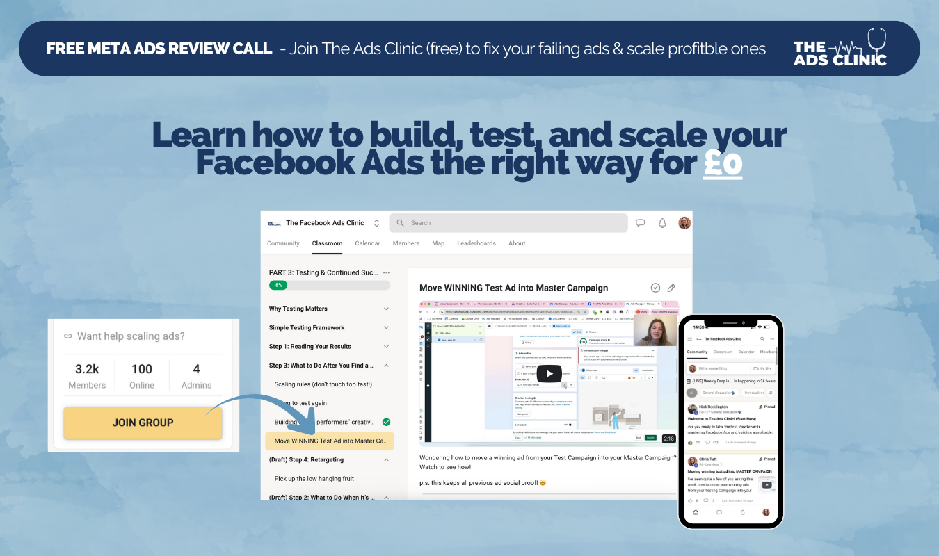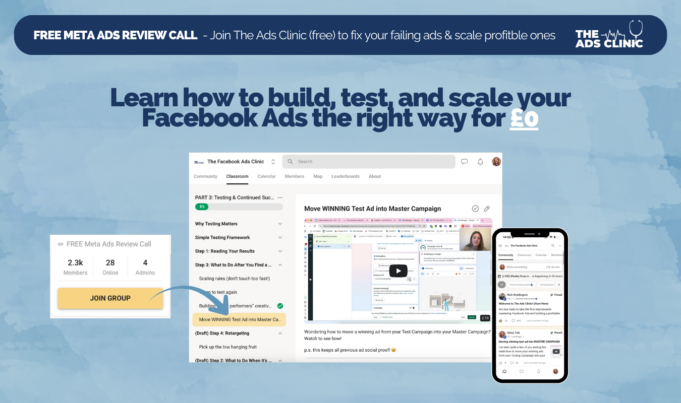 - Live Drop-In Clinic every Thursday β live calls where you get direct help with your ads and marketing.