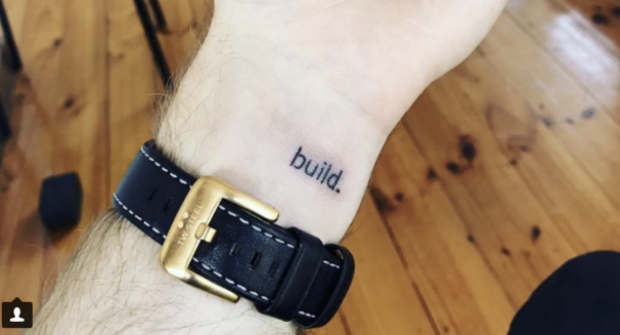 True Intelligence Agency designer David Mills has a saying, "You build, or you beg!" Luke so believes in that idea that he tattooed "build" as a reminder on his left wrist!