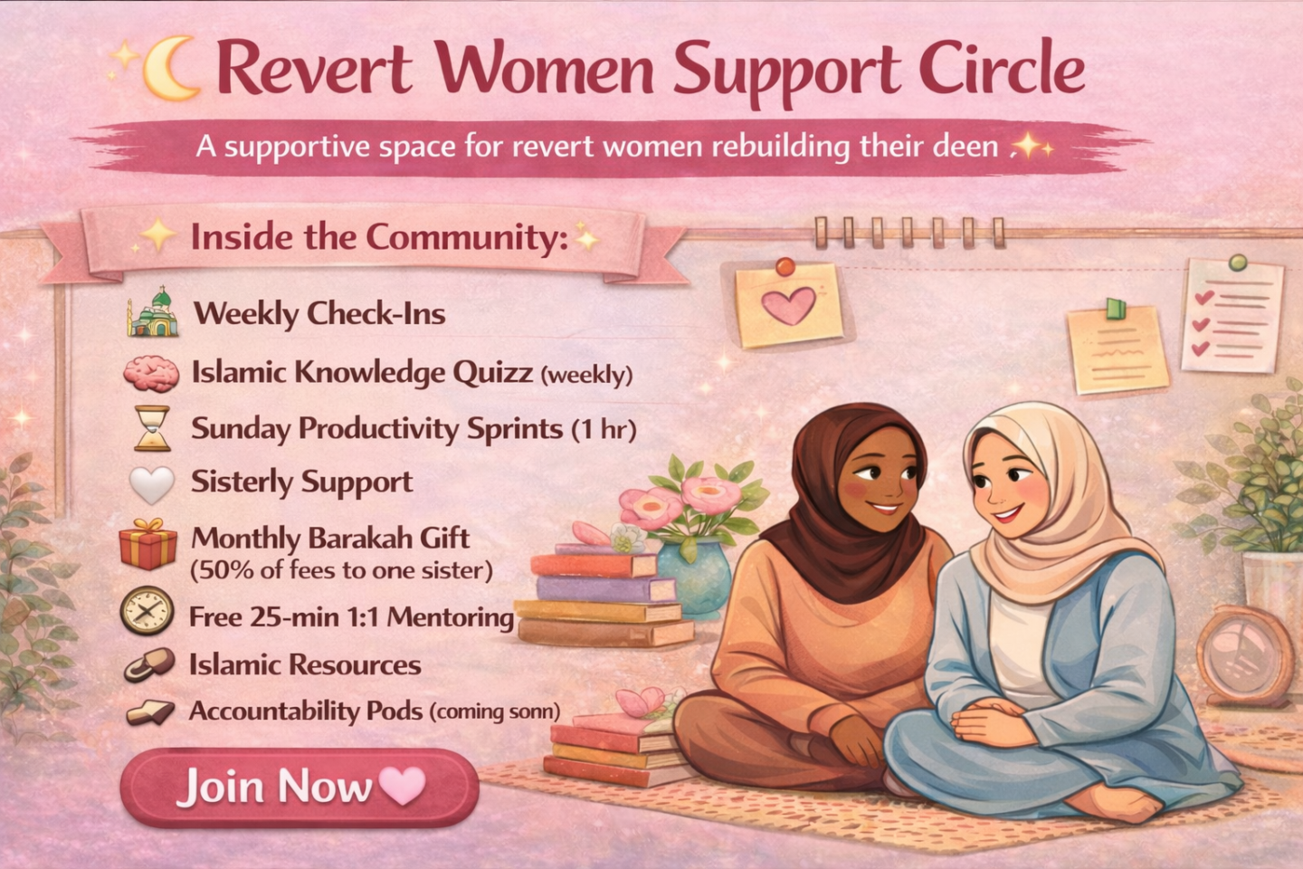 πŸŒ™ Revert Women Support Circle is a supportive accountability community for revert women and women rebuilding their deen who want to gain consistency, structure, and encouragement.